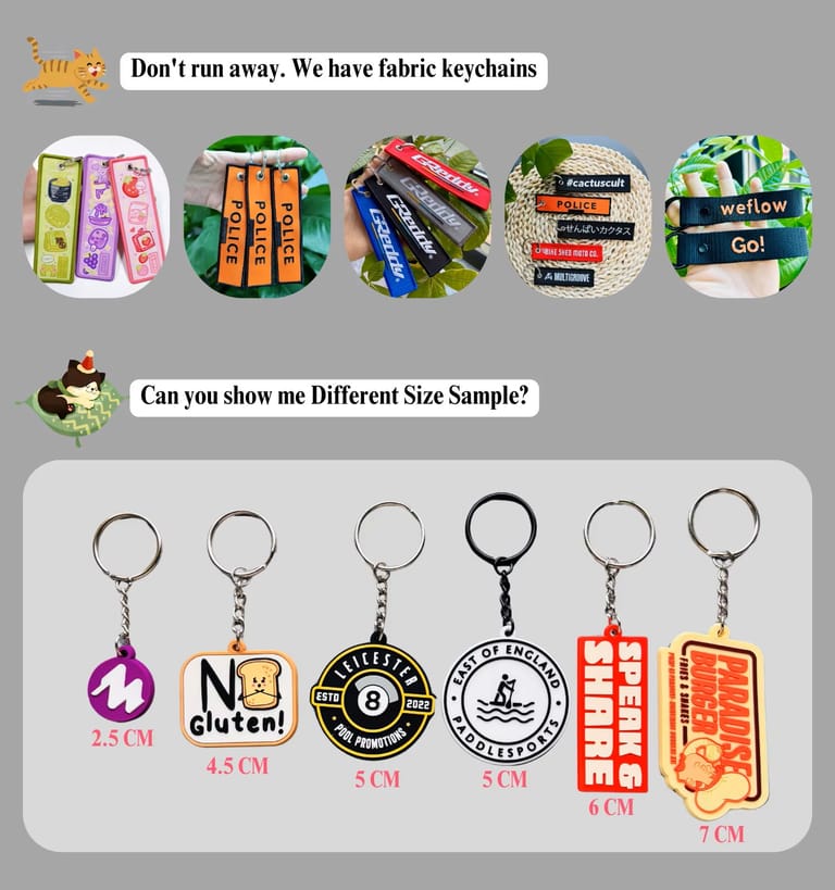 Design Custom Cute 3D Logo Soft PVC Rubber Cartoon Promotional Keychain for Business Gift